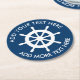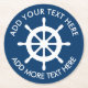 Pappra underlägg för marinblått och vitt nautiska frakt. Anpassningsbarnas pappra underlägg i rund eller annan form. Sjöfart/strand party underlägg med segelbåtshjul. Trendigets utformning för destinationsbröllop, förlovning, babydusch, möhippa, årsdag osv. Rund textmall ställe i en cirkel runt logotypen. Kasta tillbehör och tillbehör som kan anpassas efter behov.