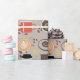 Kaffe, kaffe och mer kaffe. Kopp uppifrån och från sidan i en scen som är full med kaffebönor dekorerar denna papprare kaffekokande älskare.