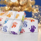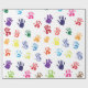 Små handavtryck i vibrerande färger.