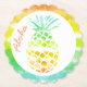 Tryckpapp för papprare underlägg med ett färgstarkt ananas, med ett färgat sken av sommartemat, mot en vit cirkel på en färgstark strippad bakgrund. Coral text läser Aloha och kan vara personlig att läsa vad du vill. Underbar för särskilda tillfällen och varje använda.