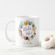En chic present till den bästa mannen, en mugg med en akvarellblomma krans i en vacker palett av burgunder, guld, korall, rosafärgad och gröna blad med "brudtjej" ingraverat i handskriven stil. Personliggör med ert bröllopsdatum nedanför. Designad för att matcha vår Paprika burgunder blomsterkollektion.