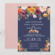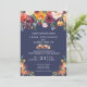 Bröllopsinbjudan matchar vår Paprika Burgundy-Blommigt, med en vattenfärgsdroppe blommigt med en underbar palett av burgundy, guld, korall, och halvmånsblå gröntar med en marin blå bakgrund. All text är helt anpassade.
