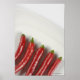 Hög vinkel sikt över fem röda chilipaprika i en platta. Copyright: Glowimages
