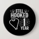 Roligtens första årsdag i bröllop är perfekt för par som varit gift i ett år och som fortfarande är fastkedjade på varandra och kärlek för att fiska! Underbaren för 1:a bröllop-årsdagen för party för att fira ett år av giftermål! Med "Fortfarande hookad efter 1 år" citeras bröllop på årsdagen med hjärtformade krok med fiskgrafik i en nödsituation i vintage stil.