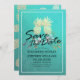 Spara mallarna för datum-/bröllopsinbjudningskort - Elegant Faux guldfoil Pineapple par på Grönten Teal och turkos Blue Ro Blommigt Damask Papper bakgrund. En Perfekt för din stora dag. Alla textstorlekar i stil, färg, kan ändras för att passa dina behov!