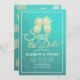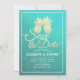 Spara mallarna för datum-/bröllopsinbjudningskort - Elegant Faux guldfoil Pineapple par på Grönten Teal och turkos Blue Ro Blommigt Damask Papper bakgrund. En Perfekt för din stora dag. Alla textstorlekar i stil, färg, kan ändras för att passa dina behov!