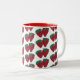 Söt par jordgubbar, fyllda med grönt löv, trycks på anpassningsbar mugg. Välj mugg stil och färg efter eget val för den här söt röda frukten. Tack för att du shoppade på CherylsArt på Zazzle.