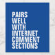 Vill du veta vad vin är bra på? Kommentarsavsnitt för Internet. Media i social. Allt går på superskojets anpassade vin-märke! Underbar för en rolig vängåva. Superskojets ordalydelse är upp till dig eller så kan du lämna det som det är att läsa "parar bra med kommentarsavsnitt på Internet". Du kan också ändra royalets blå bakgrund genom att klicka på "anpassa".