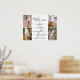 Välkommen gäster till en snygg bröllopsfest för par med en elegant anpassad 4-fotocollage 18"x24" affisch. Bilder och all text är enkla att anpassa. (TIP FÖR BILDPLACERING: Ett enkelt sätt att centrera ett foto exakt som du vill är att beskära det innan du laddar upp det till Zazzle-webbplatsen.) Den moderna minimalistiska svart-vita designen har fyra bilder som du väljer, chic handskriven stilspråkskalligrafi och elegant vintage-typografi. Denna välkomstskylt för parets bröllopsfest är ett snyggt sätt att dela förlovningsbilder som en del av dekoren för din speciella dags firande. Grattis till bruden och brudgummen!