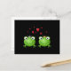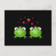Ett par söta gröna grodor med röda hjärtan på en enkel svart bakgrund.