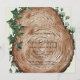 En känslig vattenfärgad illustration med ett rostfritt träsegment med synligt träd ringar, omringat av lush grey, inklusive ferns, moss och små växter. De mjuka penseldragen och den blandade färgen skapar en god och ekologisk sammansättning, perfekt för älskare och skogsinspirerad dekoration.