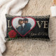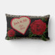Eleganten dekorativ kudde är en underbar gåva till vilket par som helst. Det finns vackert röd ros på framsidan på baksidan. Foto kan läggas till i form av ett hjärta. Baksidan av kudden kan vara personlig med texten.