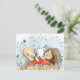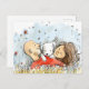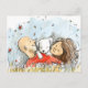 Det här vykortet i personligen ger en söt illustration av en bald, en vit marionett och en brunettkvinna. Det här är en söt design för att skicka "vi saknar dig" eller "vi kärlek dig"-meddelanden till dina älskade. Du kan anpassa alla tre namnen i designen.
