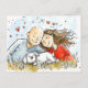 Det här vykortet i personligen ger en söt illustration av en bald, en vit marionett och en brunettkvinna. Det här är en söt design för att skicka "vi saknar dig" eller "vi kärlek dig"-meddelanden till dina älskade. Du kan anpassa alla tre namnen i designen.