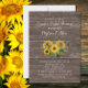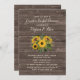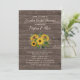 Land-stil parets inbjudningskort för möhippan med solblommor av ljusstark gult i vintage på en rustik träbakgrund.
