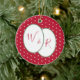 Nygifta pars engrammade utformning med plats för parets initialer på framsidan med ett klassiskt rött och vitt polka dots mönster. Baksidan har budskapet "Mr & Mrs Johnson", "Vår första jul", "2022" på baksidan. Utformningen kan vara personlig med initialer, år och meddelande, som ändras genom att du helt enkelt använder den här kommandoknappen. Ytterligare ändringar, t.ex. färg & typsnitt, kan göras med hjälp av det redigerande verktygen. Om du behöver hjälp med att anpassa, matcha produkter eller ett anpassad design kontaktar du mig via zazzle-chatta eller e-post: ursuladawnmoon@gmail.com