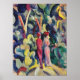 Par på skogsvägen av August Macke är en vintage expressionistisk naturmålning i finkonststil. En man och en kvinna står på en stig i en vild skog omgiven av träd.