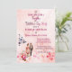 Öka trendigets Alla hjärtans dagsinbjudningar med det här unika parets blommigt design. Bilden innehåller svepande hjärtan, par och ljusa rosa blommigtar. Baksidan har en passande design. Den här teckningen är lätt att anpassa med ord. Gästerna kommer att bli glada över att få den här fantastiska inbjudan på alla hjärtans dag.
