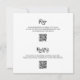 Den här moderna duschinbjudan med svart och vitt par har trendigets skripttypografi och en enkel layout med snyggt. Baksidan av inbjudan har en plats för två separata skannbara QR-koder, en för OSA och en för presentregisterinformation.