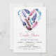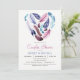 Boho chic fjädrar par dusch/möhippa-inbjudan. Inbjudan har violetta lila-, blå- och rosa fjädrar i hjärtform och anpassningsbar mönster tillbaka.