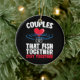 Par som fiskar tillsammans och stannar tillsammans julgransprydnad keramik