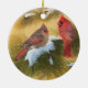 En para av kardinaler som sitter på en vitgräsgren för att smycka julhelgen. "Sörjer kardinaler och vit" en original- oljemålning av den djurliv-/naturkonstnären - Johanna Lerwick.