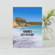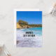 En födelsedagsinbjudan med ett foto på en strand på den grekiska ön Kreta. En vacker tropiska blå strand med skummig surfa. Underbart stillastående resmål.