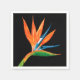 Napkins med en exotisk tropisk fågel av paradisvattenblomma i svart bakgrund (eller färg) är ett vackert tillskott till party eller hemmet. MATCHING-objekt i vår samling.