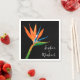 Din namn och en exotisk tropisk fågel av paradisvattenblomma med svart bakgrund (eller färg) finns på dessa cocktail-blöjor, en bröllop-fallsdekanter. MATCHING-objekt i vår samling.