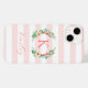 Den här trendiget av roligt har en rosa och vit strimlad bakgrund med färgstark blommigt. Anpassa designen med ditt namn och monogram eller annan text. Använda designen verktyg om du vill välja valfri bakgrund färg, redigera texten typsnitt och färger eller ladda upp egna foton för att skapa ett unikt telefonfodral med monogrammet.