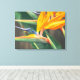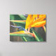 Ett närfoto fångar det pulserande färgen från en Paradise-blomma. Bilden fokuserar på blommans unika struktur, visar dess ljusa blad i orangen, ett slående blått och gult och ett rött nyans vid basen. Pallerna är placerade i en fläkt-liknande form och skapar en känsla av rörelse och energi.