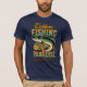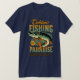I vintage har stil en pike som läcker ut från vatten och ord "Fiskepaparadiset". Lägg till din stat för att göra den till din.