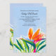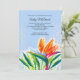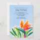 Färgfull, modern och stiliserad illustration av Paradise-fågeln ger skydd åt detta unika inbjudningskort för möhippan. Det är perfekt för en kaliforisk möhippa där den här unika blomman finns i överflöd.