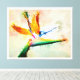 Fågeln vid Paradise Watercolor har en vattenfärgsrendering av en vacker fågel av paradisblomma.