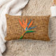 En exotisk vattenfärgsfågel av paradisblomma på ett vävt torktumlare i mönster som fanns på snyggten den sommartemade dekorativ kudde. MATCHING-objekt i vår butik.