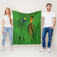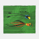 Färgfull vektorkonst av ett par fiktiva exotiska fåglar av paradiset med långa fjädrar från svan och starkt rörande på en grönt djungel som bakgrund.