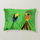 Färgfull vektorkonst av ett par fiktiva exotiska fåglar av paradiset med långa fjädrar från svan och starkt rörande på en grönt djungel som bakgrund.