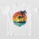 Transportera dig tillbaka till 80-talet med denna rena, platta tropiska solnedgång i flat-design. Med djärva silhuetter av lutande palmer och svävande måsar mot en levande, segmenterad sol, fångar denna design essensen av en oändlig Floridasommar. Oavsett om du är på väg till kusten eller bara vill ha med dig en bit av stranden, är denna design skapad för att se ännu bättre ut med tiden. Den passar perfekt till The Untucked-estetiken – avspänd, tidlös och otroligt cool.