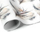 Paradisfågelblomman med mjuka, flödande linjer inkorporerar nyanser av vitt, grått och varma toner på en vit bakgrund