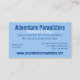 En visitkort med ett foto av en blåttparaglider med en tandem passagerare som beskådas från ovannämnd och soaring kick över bakgrunden, landskap i frankriken, för tuition, äventyrhelgdagar, semestrar eller leverantörer/producenter. Beklädatexten är i blått och vit på svart och det omvänt, blek - blått och vit på mörk - blått.