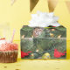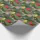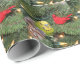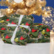 Gult- och gröntparakiter eller budgie, sitter bekvämt i en julgran bredvid den huvudsakliga helgdag för jul för prydnadfågelälskare som slår in papper