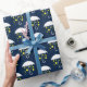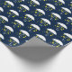Pappra med ett mönster med ett vitt paraply som visar leende citroner och grönt löv mot blå bakgrund.