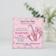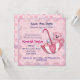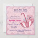 Söt inbjudan till babyfest med bedårande rosa teddybjörn som åker i ett paraply, stora prickar och andra speciella detaljer. Anpassa med din information.