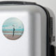Ett paraply sätts ut i sanden, på stranden till havs, med många vinkara och mjuka färg