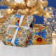 "Joy ,Peace,Kärlek" Elegant,klassisk, stark och god jul-design på ett parlament med antika motiv för Florentine-blommigt och en blankt 3D-blåssafir-gemsten från Oriental angel miniature 1540 av Hosein Naggash.
