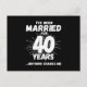 Roligt 40-årsjubileum för gifta par som har levt det gifta livet i 40 år och sett och hört allt och ingenting skrämmer dem. Perfekt för ett gift par som firar 40 år av äktenskap med en 40-årsfest! Denna noveltetspresent för jubileum kommer att ge massor av skratt från din make eller hustru eller festsällskap. Funktioner "Jag har varit gift i 40 år, ingenting skrämmer mig" rolig äktenskapsjubileum-meme.