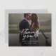 Ett bra och genomtänkt sätt att tacka dina vänner, familj och kollegor som hedrade dig med sin närvaro på din bröllopsdag med detta moderna fototackkort med handskriven "tack"-text och ett kärlekshjärta.