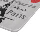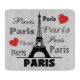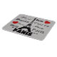 Paristextillustration med Eiffel Torn och dekoration med röda hjärtan. Det går att ändra bakgrunden till färg och lägga till en annan i designen efter eget val.
