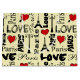 Paristextdesign för alla hjärtans dag med röda hjärtformer, Eiffel Torn och gatulampor dekoration på gultens bakgrund