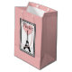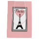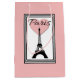 Parisillustration med Eiffel Torn och dekoration i svartvitt på rosans bakgrund